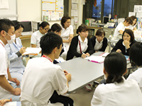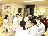 看護師、リハビリテーションスタッフ、ソーシャルワーカー等の関係スタッフが集まり、定期的にカンファレンスを実施しています。
